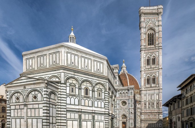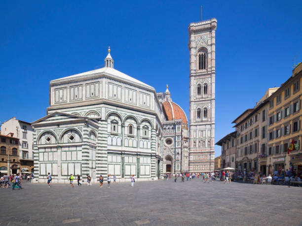 The domed cathedral of Santa Maria del Fiore is also called the Duomo and is the most famous of the buildings at the Duomo Complex .The multicoloured and imposing cathedral is one of the most iconic buildings in Italy. .