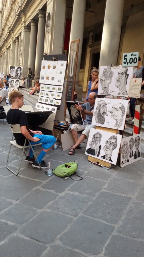 Talking of street artists, most of the streets of Florence have artists drawing pictures and displaying their art works. A true testimony to their ancestry….perhaps keeping their tradition alive. One can get one’s caricature drawn from them.
