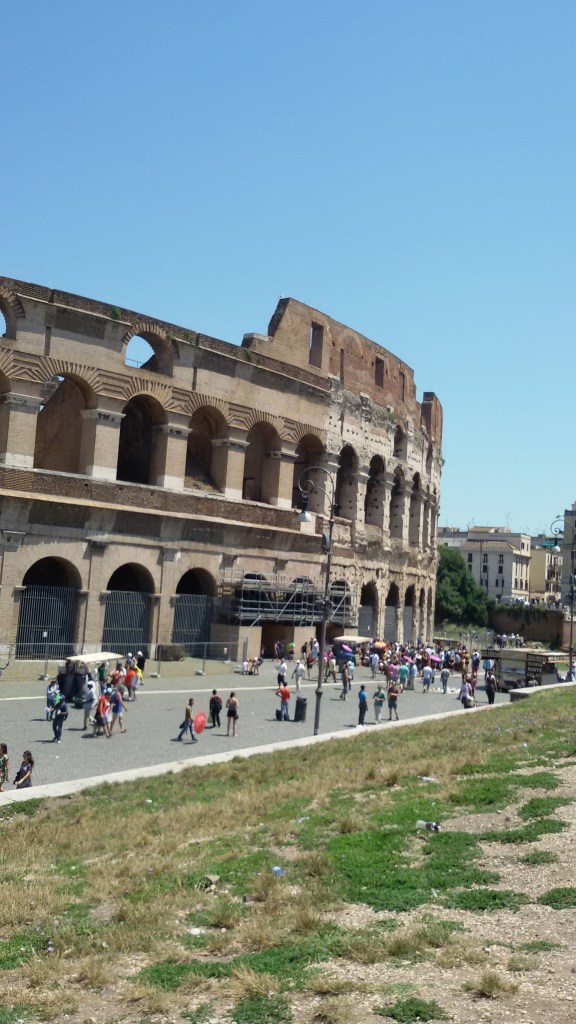 One of Rome’s most famous land marks is the Colosseum. It is an oval amphitheatre built with limestone , volcanic rock and concrete in ,central Rome and is still the largest amphitheatre in the world despite its age. It has 4 floors; the first 3 having 80 arches each and decorated with huge statues. It was built in less than 10 years….an amazing feat for such a large structure in those times.