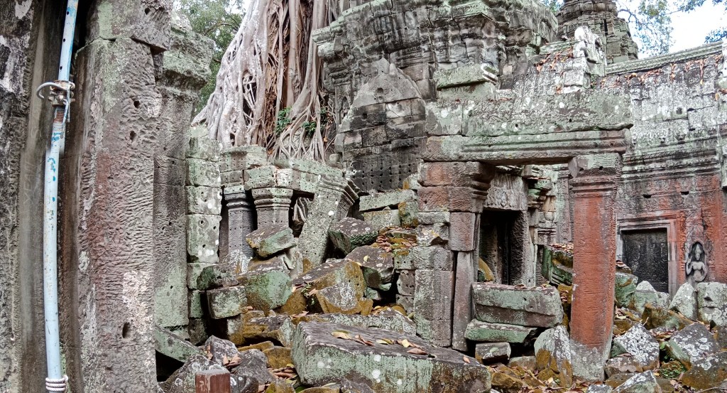 After the fall of the Khmer Empire in the 15th century, this temple was abandoned and neglected. Restoration and reconstruction work started here in the 21st century. But the location and the way the temple had merged with the jungle and the trees had grown all over the structures, it was decided to not alter the overall picture as it was unique in many ways.