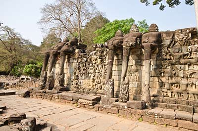 The terrace is named after the sculptures seen on it. Several elephant heads protrude out from the wall and their long trunks almost extending to the ground. It was used as an audience hall and for public ceremonies. The King often listened to the complaints of the people from here. Many parts of the terrace are in a state of collapse.