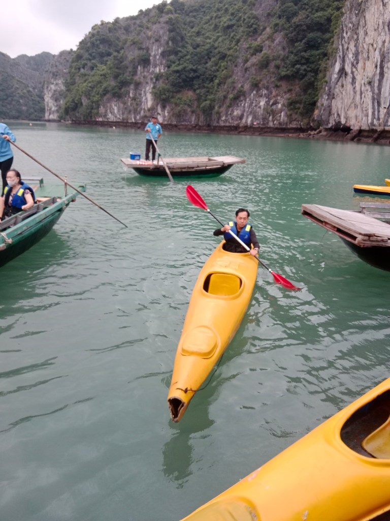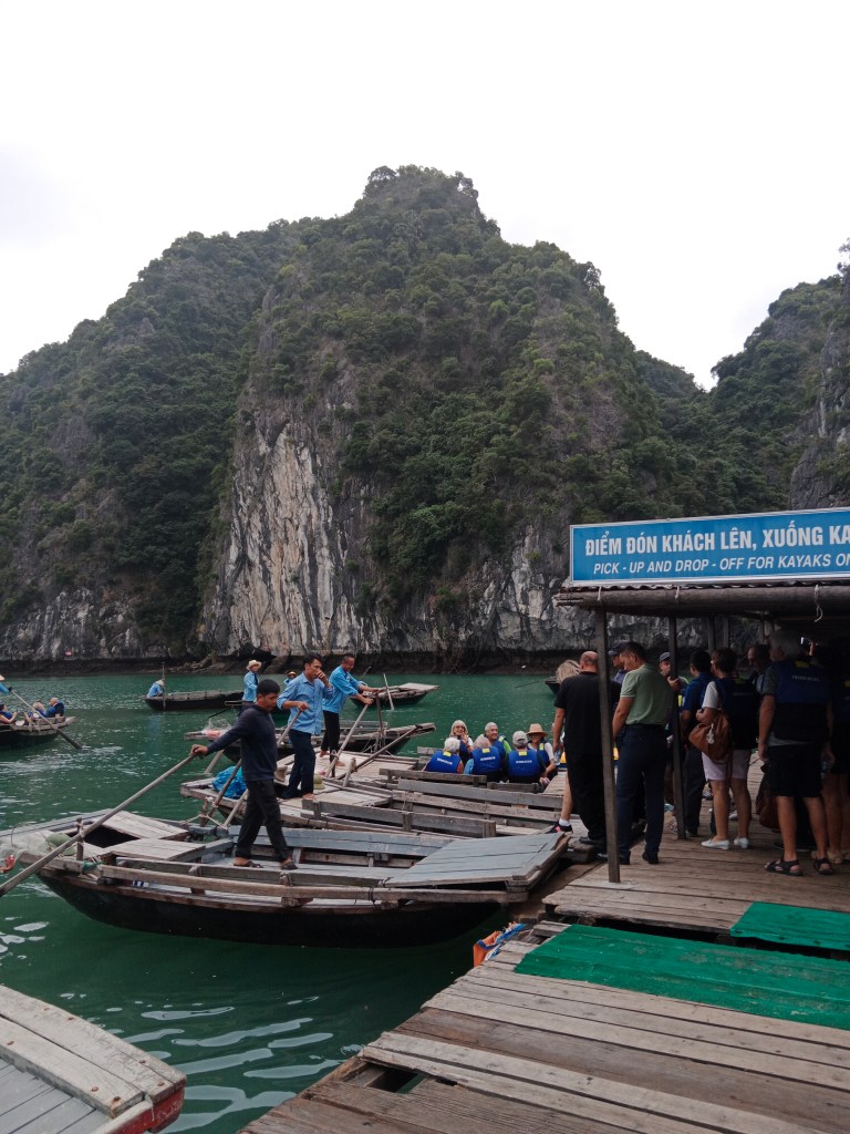 After the cruise on the bay, our junk boat anchored at a particular place and we got ready for a sampan ride under some of the limestone karsts. We reached a jetty from where the kayaking and sampan boat rides started.
