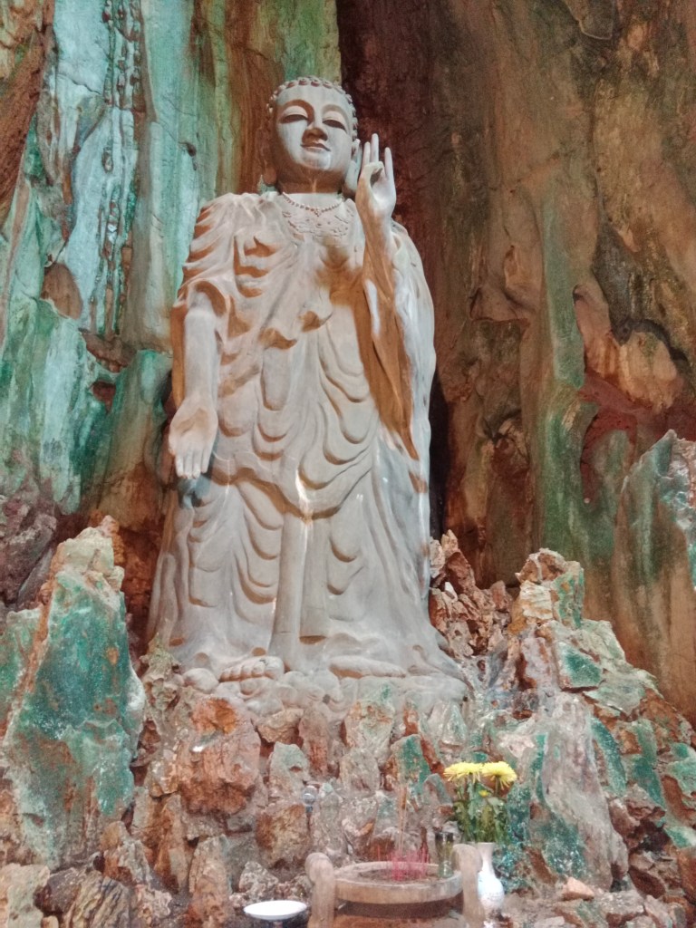 A 20 minute drive from our hotel in Da Nang, we were at the Marble Mountains which are five craggy marble towers soaring upwards from the surrounding plains.