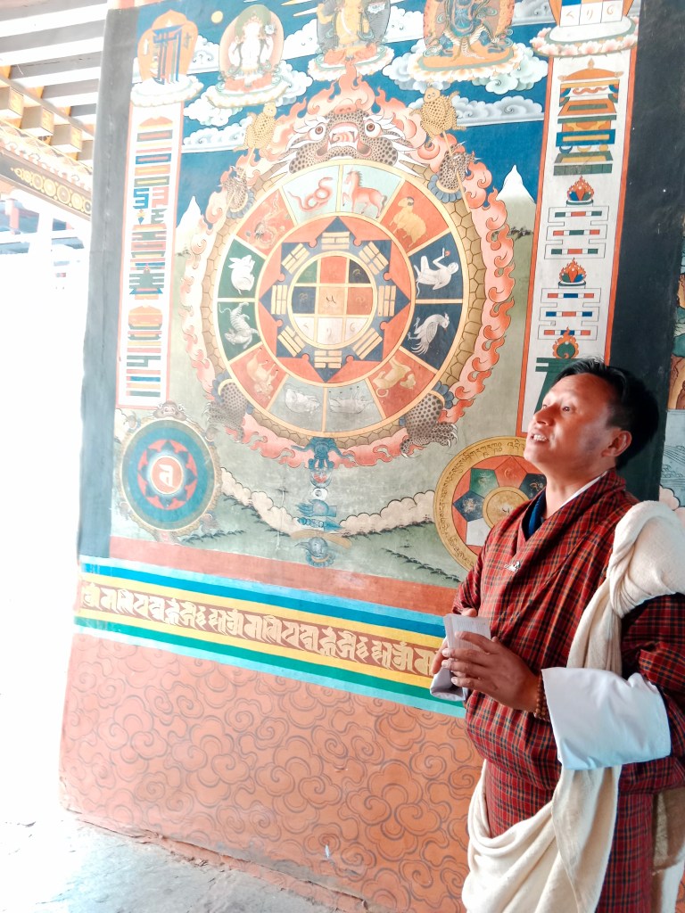 The paintings of zodiac signs, folklore and name of Zhabdrung Rinpoche and Sanchay explaining