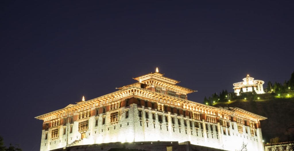 The National Museum of Bhutan sits further up on the hillside. The Dzong and Museum are illuminated at night providing spectacular views.