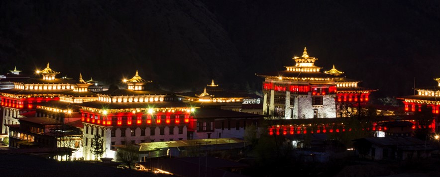 The National Museum of Bhutan sits further up on the hillside. The Dzong and Museum are illuminated at night providing spectacular views.