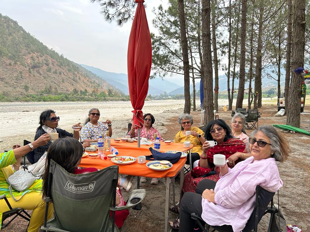 By the time we finished the dzong and the bridge, we were all ready for a nice meal. And what a surprise we had. A riverside lunch was organised . With the sound of the gurgling waters and the gentle breeze blowing in, we really enjoyed the lunch. Some pictures…