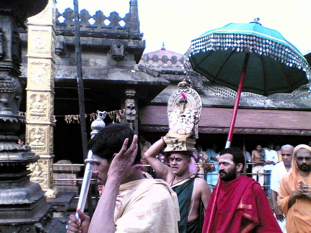 A smaller image of Goddess is taken in a ceremonial procession daily around the outer parikrama. Sometimes she is carried by one of the priests , at times in a palanquin and on special occasions on a chariot. These are all ceremonial rituals followed here.