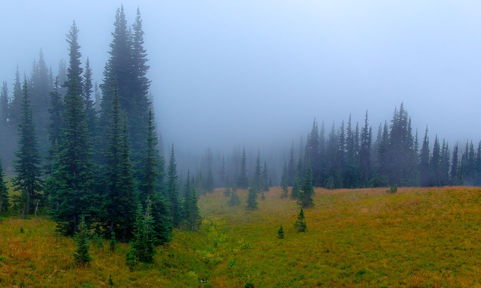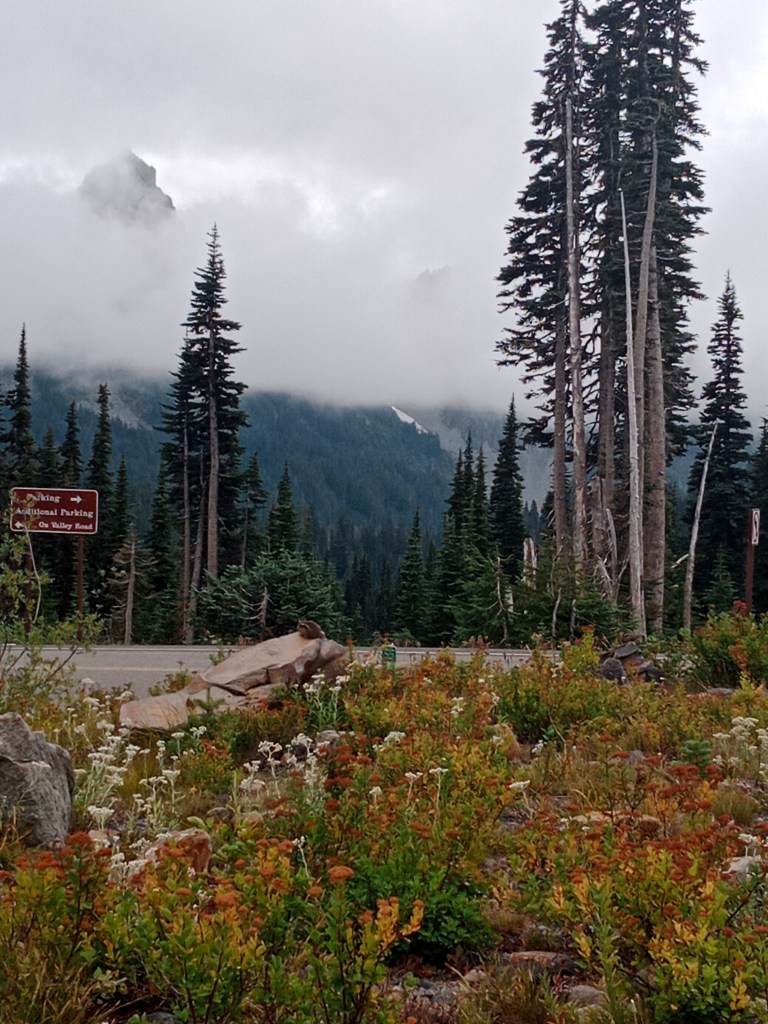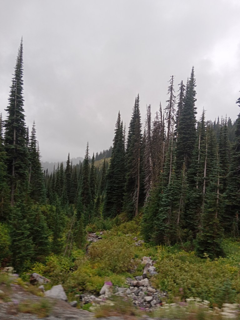 The day had been cloudy and drizzly and Mark had prepared us to have no views of Mt Rainier. He said, you can be on the mountain and still not see it. But there is much more to be seen and done along the route and we should make the most of the situation.
