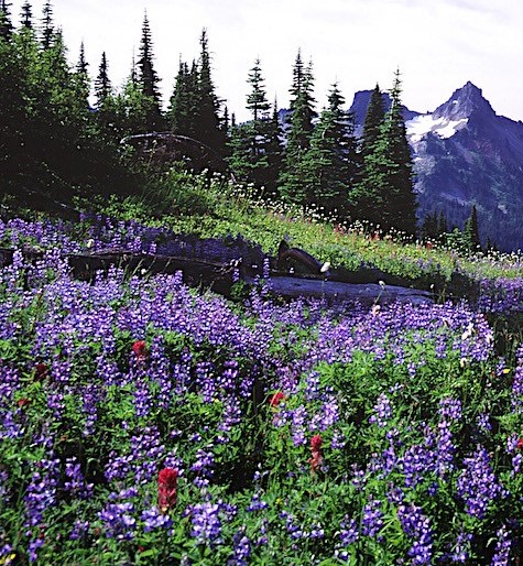 Subalpine meadows remain covered under several feet of snow in winter and yet spring up blooms when spring arrives. Mt Rainier region has been often described as one of the best places to view wild flowers. The long period of snow covered soil, leaves a very short period in summer for these dramatic blooms in and around Paradise. The rivers, lakes, falls and snow can be found elsewhere but not those wild blooms.