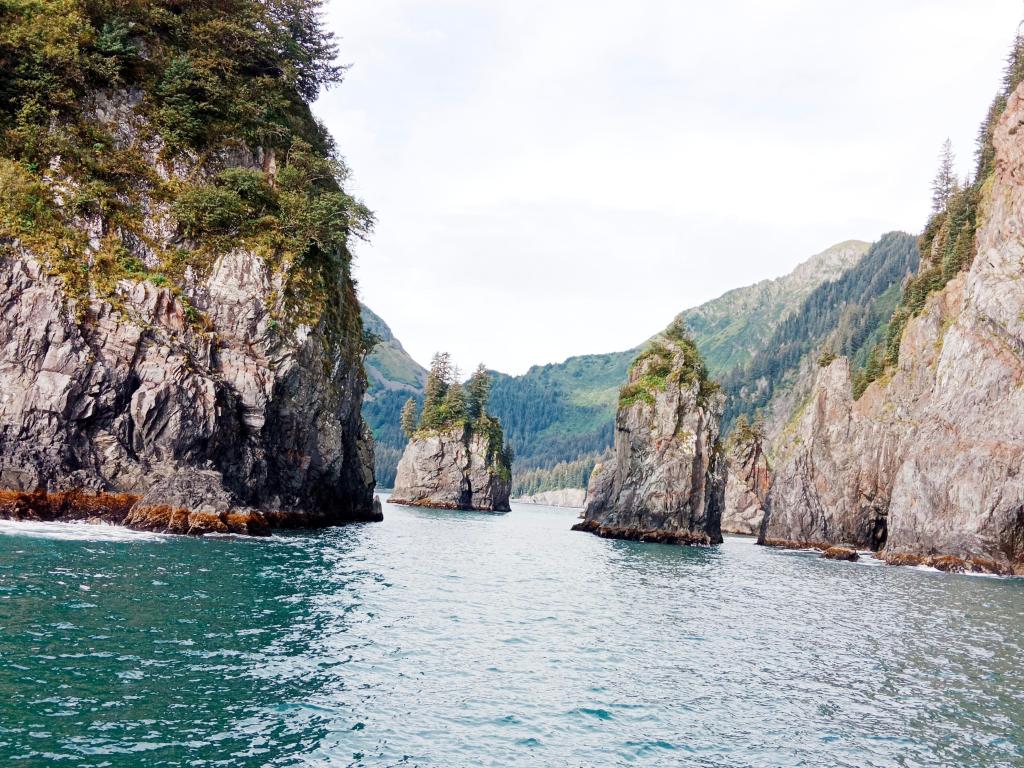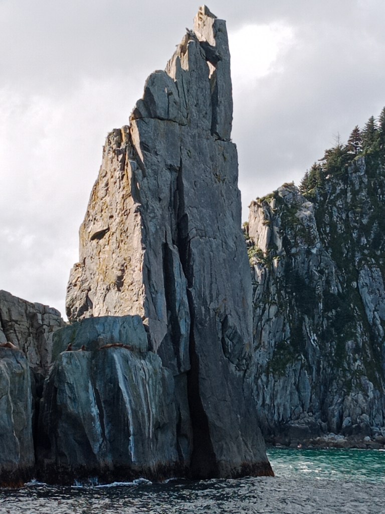 A excellent example of the rugged coastline of the Kenai Fjords, these spires are the result of years erosion of the shale rocks by the waters . Some pictures…