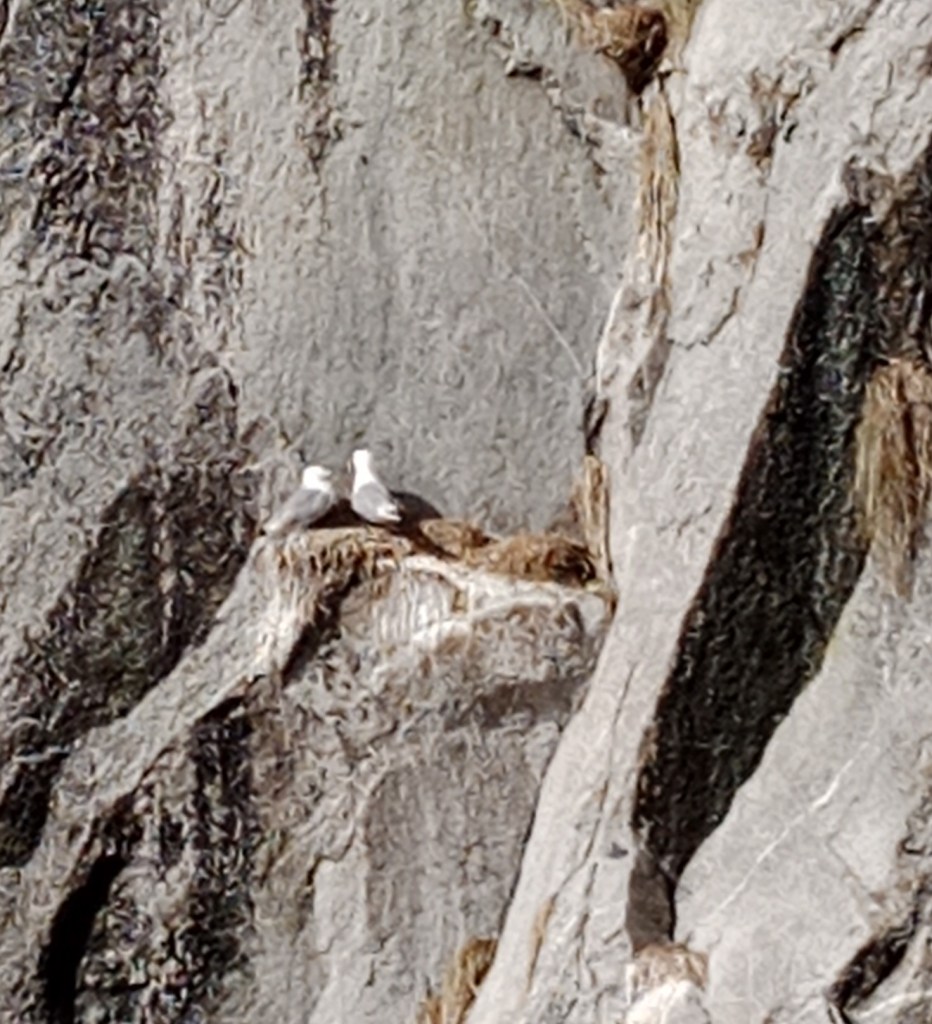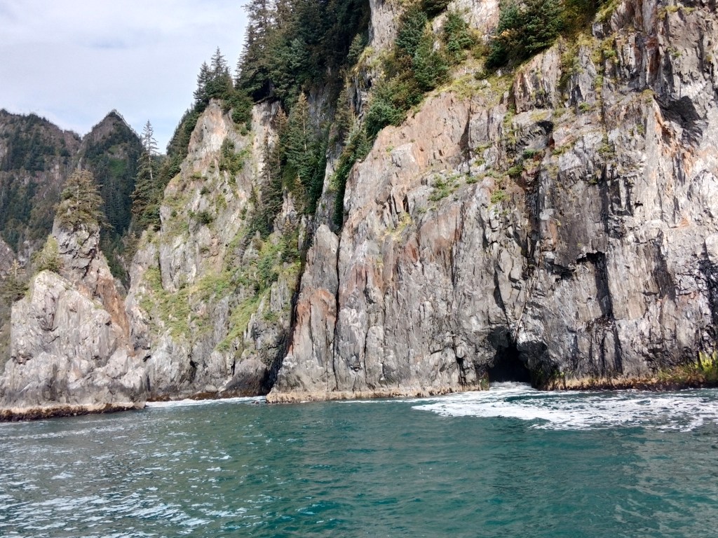 The initial part of the cruise was along the Resurrection Bay and the ship’s captain took us close to the shore whenever any wildlife was noticed. The rough shale cliffs with irregular vertical markings had deep crevices closer to the water at many places and the rocks provided nesting sites for many birds.