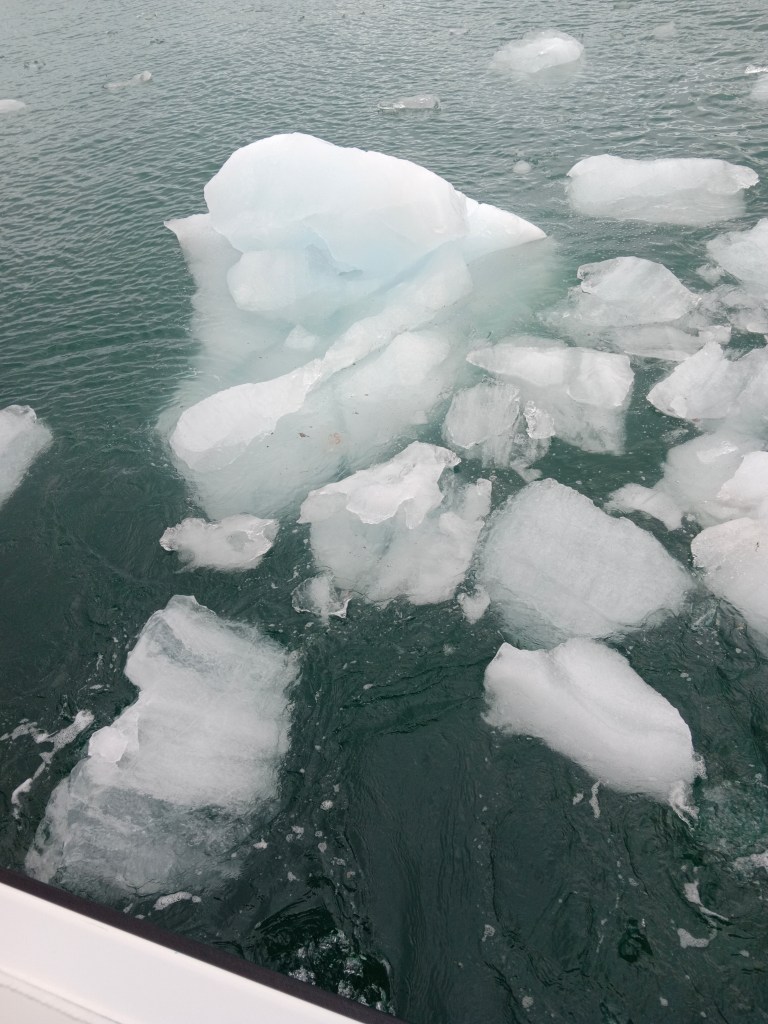 The crew quickly picked up some of the floating ice which we could all carry and later on they used it for glacier ice cocktails on board…