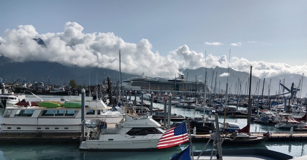 Having read raving reviews of the cruise through the Kenai Fjords off Seward, Alaska, we had booked one and finally the day of the cruise dawned. We were put up at the Harbour 360 hotel which overlooks the wharf and ferry terminal at Seward.