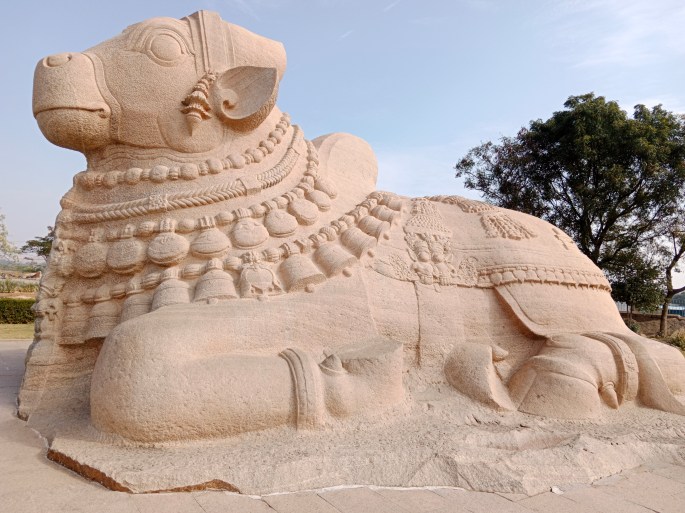 The Nandi (Bull) is a monolithic granite bull in sitting posture, 10 mts in length and 6 mts in height . Considered the largest Nandi in India, it is depicted with short horns and decorative bells and ornaments around the neck. A lily pond adds to the beauty of this small temple .