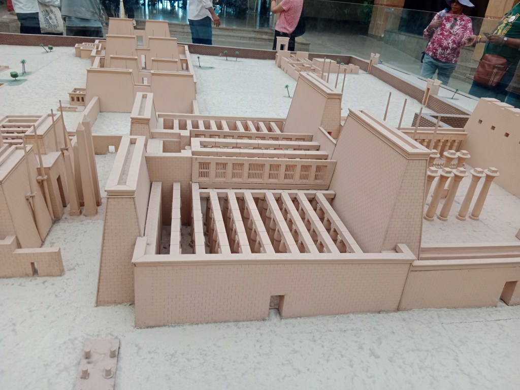 A model of the temple. The location of hall of pillars and the obelisks are clearly seen