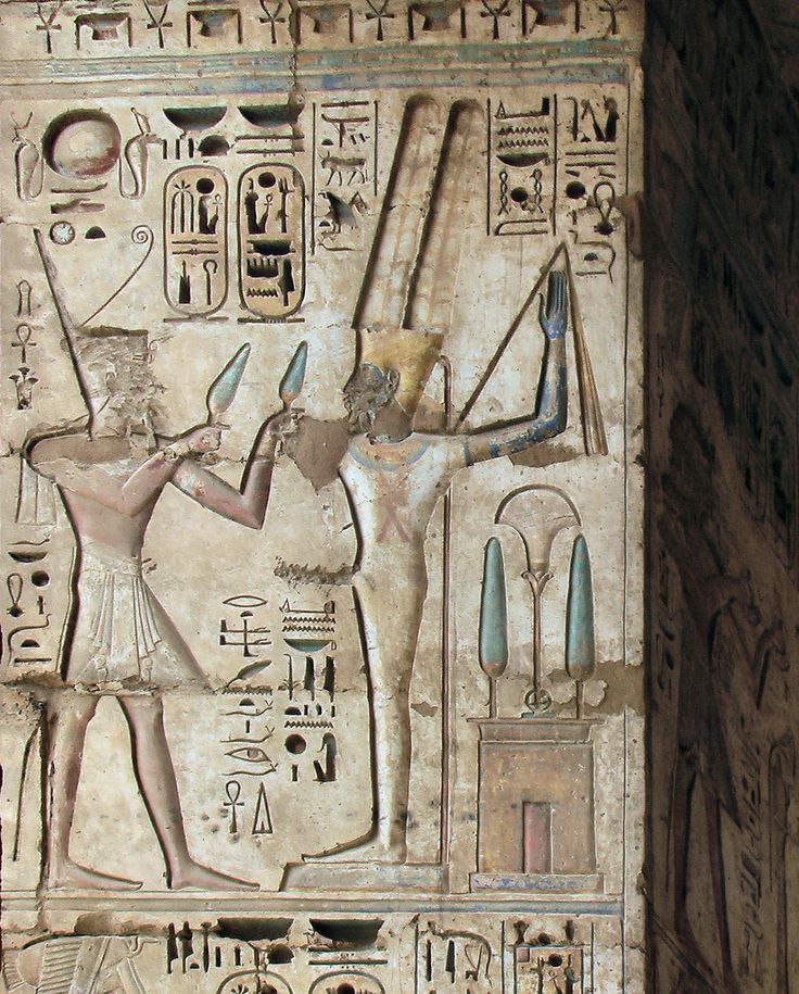 Amon and Mut at the entrance to the colonnade.