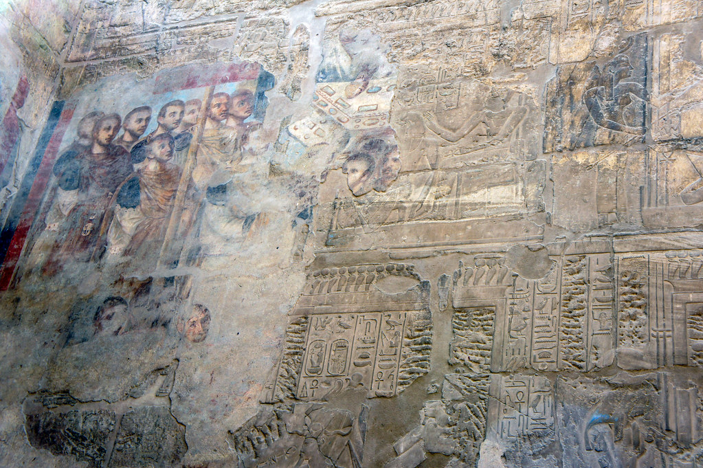 Deliberate removal of hieroglyphics with plastering and Roman painting