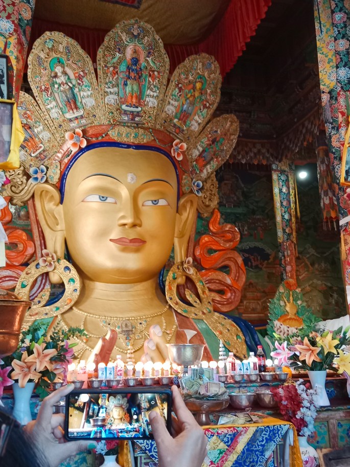 The giant Maithreya Buddha statue is placed facing the direction of Baltistan in Pakistan and it is believed that the Buddha will bring peace to the region.