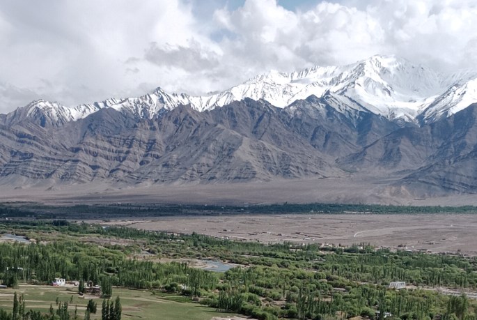 Beautiful view of the Himalayas, Indus river and valley from Thiksey