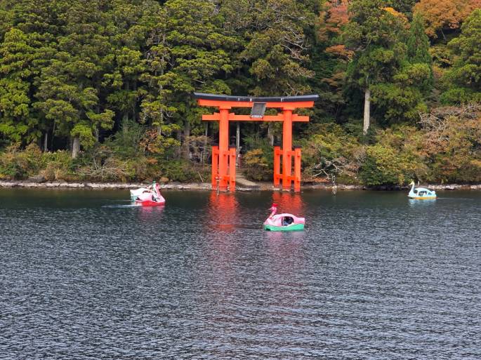 We took a sightseeing trip on Lake Ashi on a pirate ship. Fall colours dominated the scenery . Some pictures…