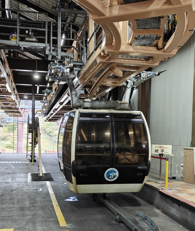 After crossing Lake Ashi, we took the ropeway from Togendai to Owakudani. This ropeway has gondolas which give beautiful views of the active hot springs and the Owakudani valley. If the visibility is very good, even Mt Fuji can be seen from the ropeway.