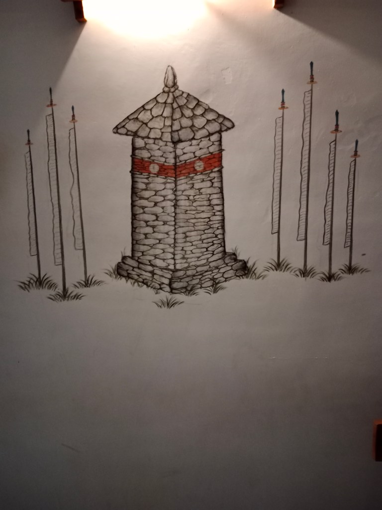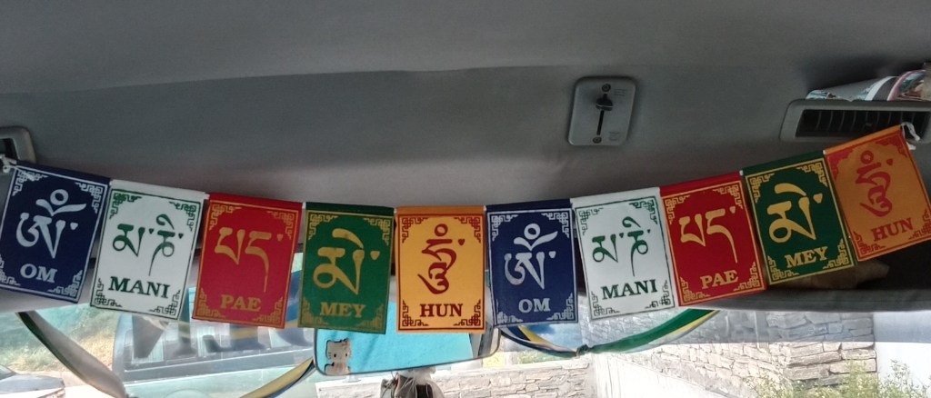 Talking of flags, the bus in which we were travelling had this colourful flag hung in front…so typically Bhutanese…