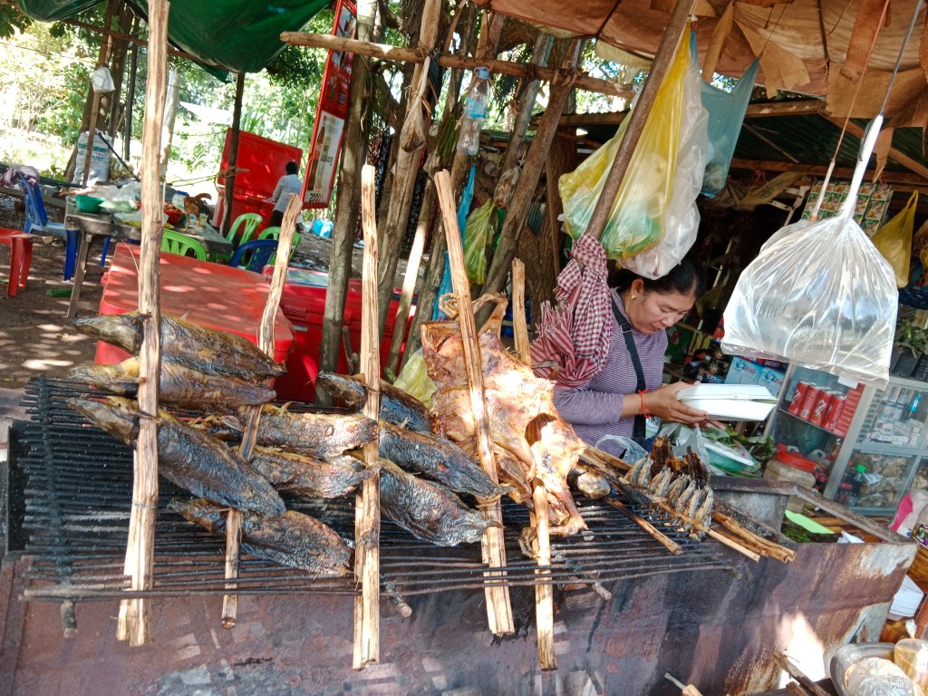 The Tonle Sap is the focal point of life for a large section of Cambodians who depend on it directly or indirectly for their livelihood. Fishing , particularly exporting fish products like fish paste is the backbone of their survival. There are at least 300 species of fish living in the Tonle Sap . The floods help growth of large fish and they are easy to catch when the water recedes as they get caught in shallow pools or in the bamboo wires and nets.
