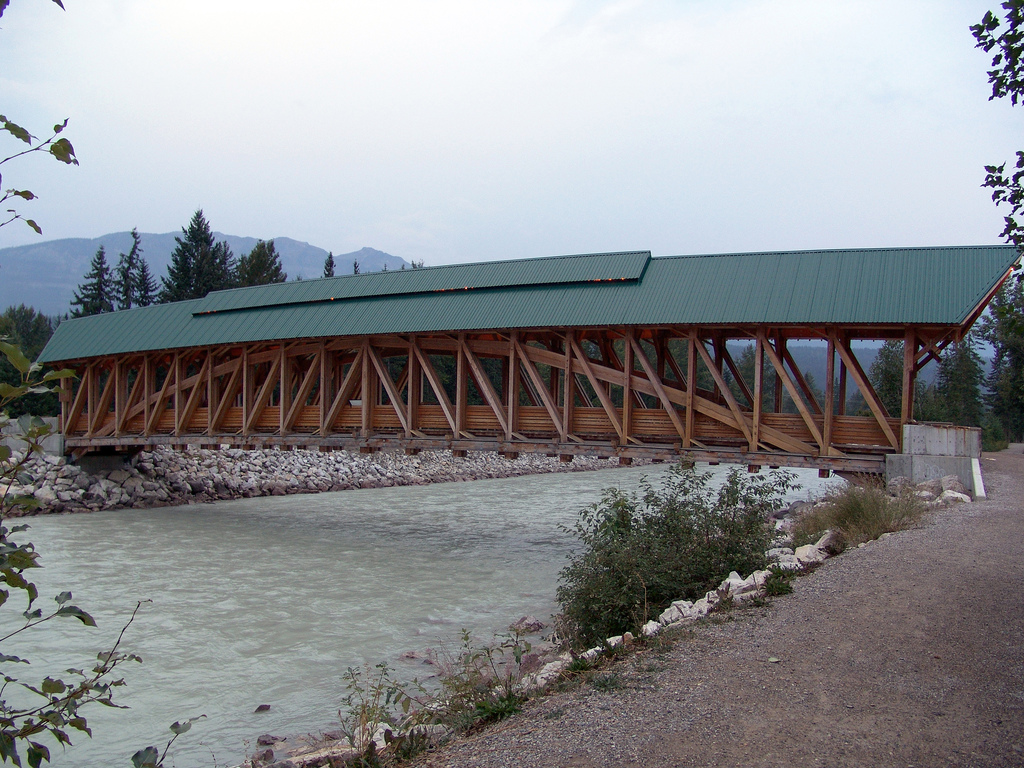 This is a suspension bridge across the Capilano River. Around 70 metres above the river bed and 140 metres in length, this bridge is in private ownership. Originally made with hemp ropes and cedar planks, it was replaced with wire cables