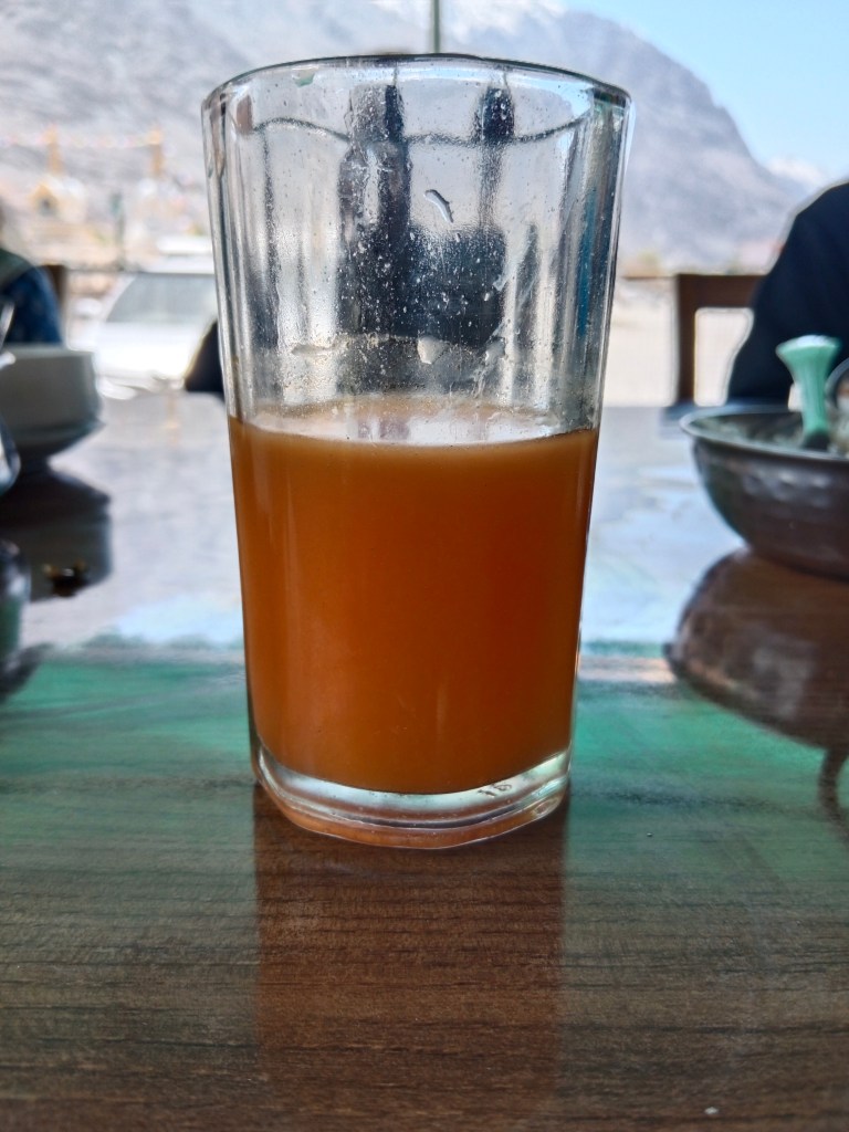 Enroute, we had lunch at a local restaurant where we were served the local Seabuckthorn juice. The unique Seabuckthorn berry also called the Leh berry is widely found here all along the way among the shrubs.