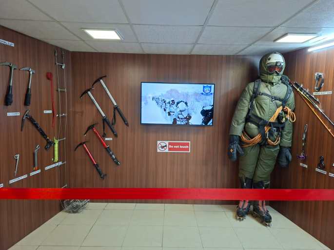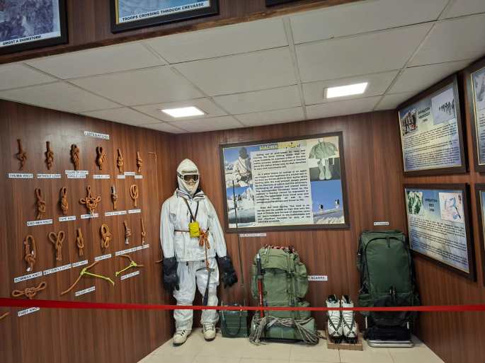 One section displaying various kinds of arms, ammunition, artillery, clothing , high altitude combat equipment , life saving devices and various important artefacts, acts as an eye opener to the common man.